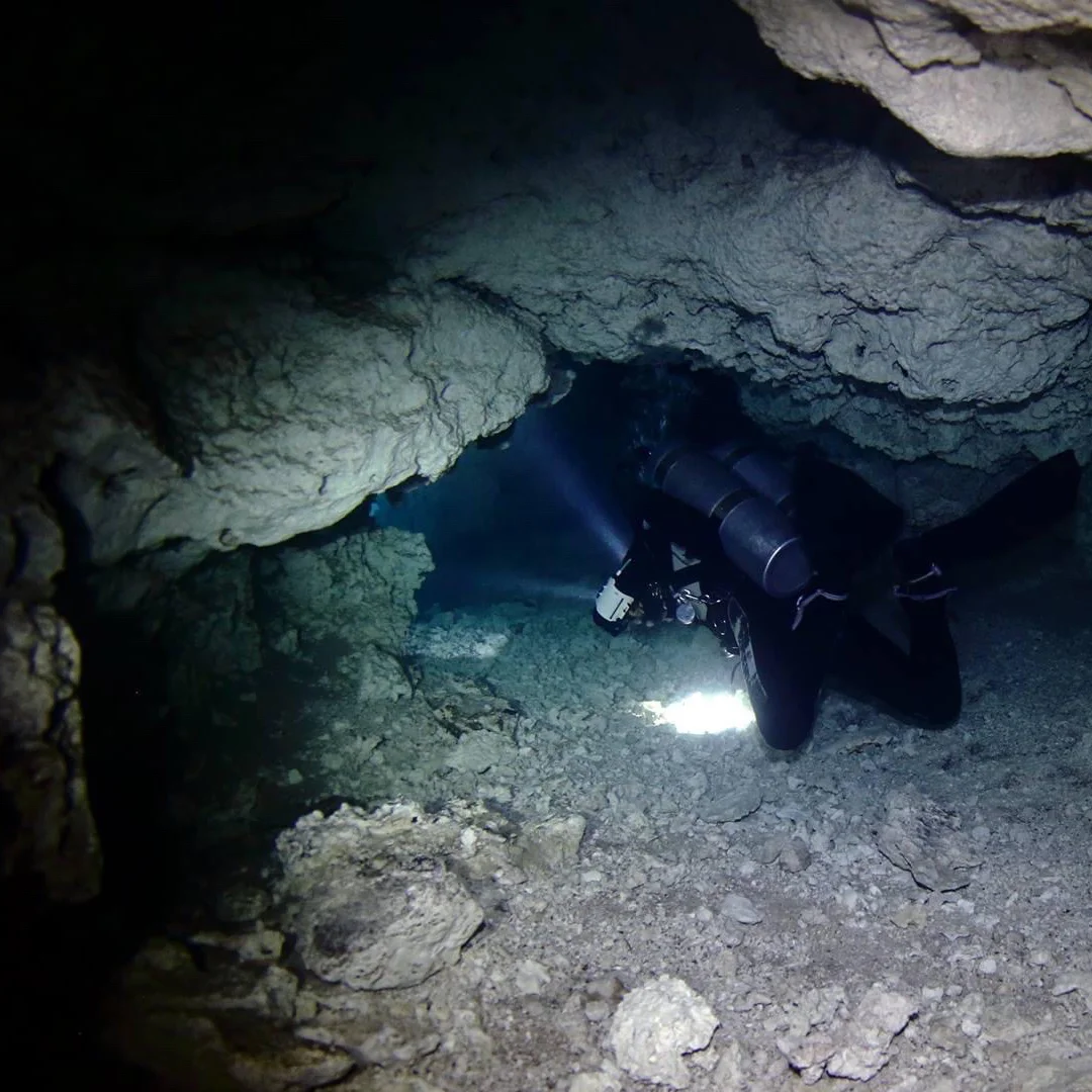 Since Angelita is a deep dive with limited bottom time, we pair it with a shallower, crystal-clear cenote (like Car Wash or Casa Cenote) for the second tank to maximize your day.