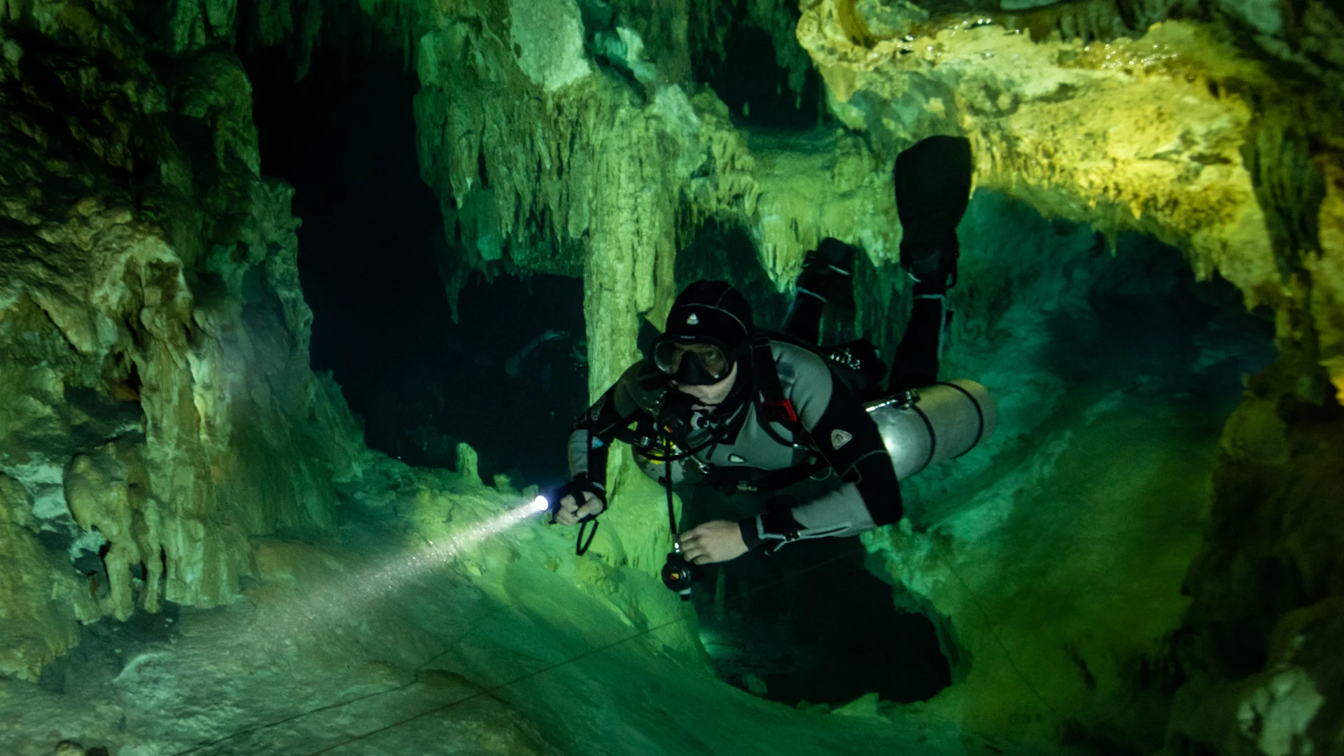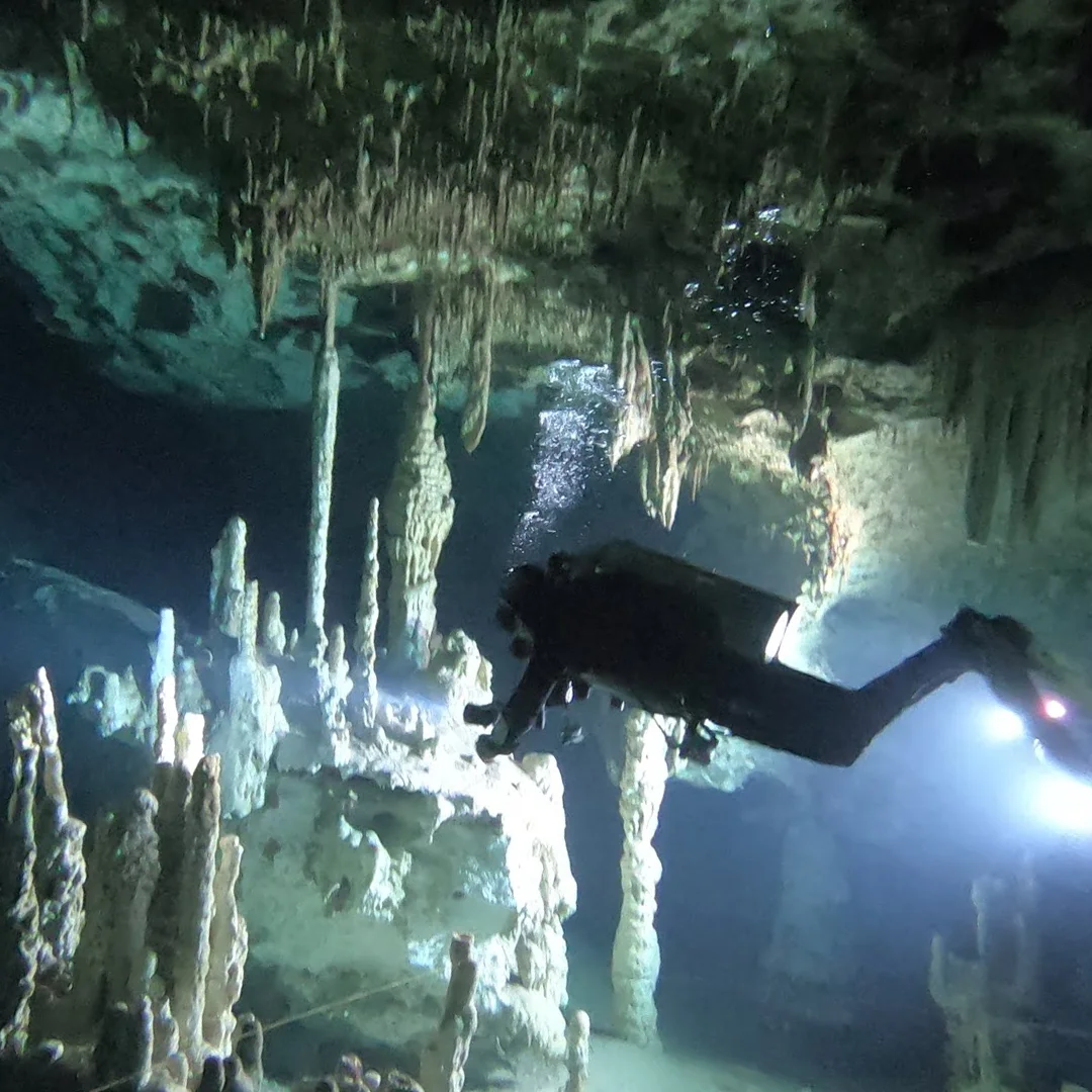 Float weightlessly through a fragile underwater palace featuring millions of stalactites and stalagmites.